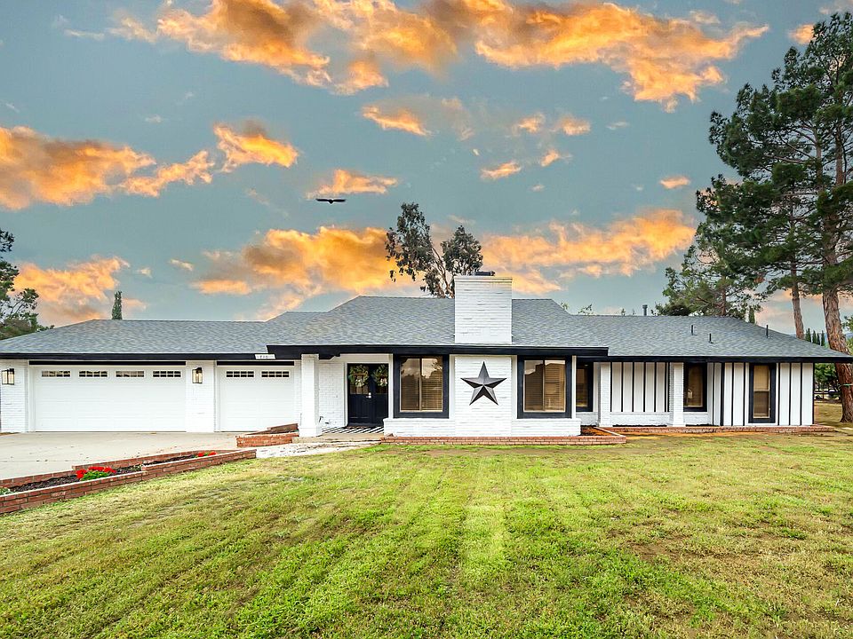 Stunning, Modern-Farm style single-story located on a wide street of a quiet neighborhood. This home is completely remodeled with modern kitchen, new counter tops, new stainless-steel appliances, farmer-style sink, peninsula and plenty of cabinet space. All new waterproof flooring throughout. No carpeting. All new paint inside and out. New roof, new water heater and all new lighting both interior and exterior. Bathrooms have been remodeled with exciting and beautiful, luxurious shower in master bath and a huge walk-in closet. 3 car garage and nearly an acre of land makes room for animals, RV, Toys, a garden, a pool or anything you want! 2 working fireplaces make for cozy evenings and the covered patio is perfect for family barbecues. Located less than a mile from freeway. Country living never looked so luxurious. Best of all, it could all be yours.