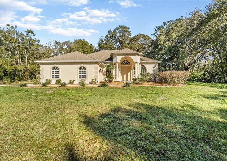 Immaculate and move in ready! Over an acre of land and nestled around mature trees. The long private driveway leads you up to the side entry garage. Complete with 3 bedrooms, 2 full baths and 1,761 square feet of living space. The entry invites you in with hardwood floors and transom windows. The formal dining room has heavy crown molding, chandelier and chairrail. The kitchen has beautiful corian countertops, solid wood cabinets, recessed lights and large snack bar; perfect for entertaining and family gatherings. The living room has a double tray ceiling, transom windows and french doors that lead out to the screened patio. The master bedroom gas wood floors, crown molding, chandelier, bay windows and private bath that features a double sink bath, large soaking tub and glass enclosed separate shower. Bamboo floors in other bedrooms and spacious laundry room with tile floors, custom cabinets and utility sink. Enjoy your morning coffee in the screened patio with total privacy overlooking conservation. Quiet neighborhood with no HOA or CDD. Conveniently located to schools, shopping and great restaurants. Easy access to I-75 and SR56.