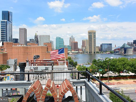 Breathtaking city skyline, neighborhood & water views await from the 5th-story roof-top deck of this 4-story contemporary end-of-group townhouse in Historic Federal Hill. Nearly 2000 square feet of interior living space. Standing proudly on William Street at the edge of Baltimore's famed Inner Harbor, this 3 bedroom + den, 3 bath property offers a secure, gated brick courtyard entrance, open floor plan with Heart Pine wood flooring on 3 levels along with ceramic and Travertine tile. Each bedroom and bath is on a separate floor. Oversized central stairwell skylight provides cascading natural light throughout. The entry level features a High-End kitchen with granite counters, generous storage, GE Monogram counter-depth stainless-steel refrigerator with filtered ice & water dispenser, GE Monogram stainless-steel 4-burner gas stove with convection oven, Bosch stainless-steel dishwasher and access to the private courtyard; dining room with 2-story atrium and living room. Upstairs you'll find a sunny den/potential 4th bedroom with a Juliet balcony & bedroom with private balcony and full bath; on the fourth level you enter the Primary suite with full bath and access to the lower and upper roof-top decks. Unobstructed views of the Inner Harbor across Rash Field and surrounding neighborhood. The main level features a separate entrance, bedroom and laundry room with full bath. All front windows replaced with Jeld-Wen double hung insulated windows. This property offers a unique contemporary living experience in the front of the Historic District. Convenient location to downtown, shopping, dining, I-95 and I-83. Imagine... your new home!