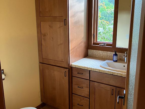 This 2-bedroom, 2-bathroom property at 710 Wilson Ave offers 1,400 square feet of comfortable living space. The interior features radiant floor heat, a wood stove, built in bookshelves and lovely views of trees. The large master bedroom is upstairs with lots of light, a skylight, walk-in closet and a walk-in shower. The lower bedroom has a walk-in closet and nice light. The kitchen is equipped with stainless steel appliances, including a refrigerator, oven, and dishwasher and looks out to the backyard with patio. The downstairs bathroom has a tub/shower combination and ample storage space. Additional amenities include hardwood floors, vaulted ceilings, and a heated garage with workspace. Outside, the property includes a yard with a garden, a patio for outdoor relaxation, and a covered front porch. There is also a storage shed for firewood, bikes and other things. The location is close to walking and biking trails and the beach! This home is in a wonderful, quiet, friendly neighborhood within walking distance to Fairhaven Village - which has a grocery store, library, restaurants, shops and more! The home is smoke-free and includes a washer/dryer, storage space, and a workshop. Owner pays water, sewer, garbage, recycling and landscape maintenance. Owner maintains upstairs apartment in the house with shared laundry area.