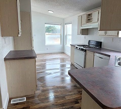 Cozy 3 bedroom 2 bath home with open floor plan and tons of recent updates! Fresh paint and newly installed flooring throughout! Sequestered primary suite with newly installed tub & shower. Located in an established park with mature trees, paved roads with community pool & community center. Water and trash included in rent. Tenant must also apply through Airline mobile home park.