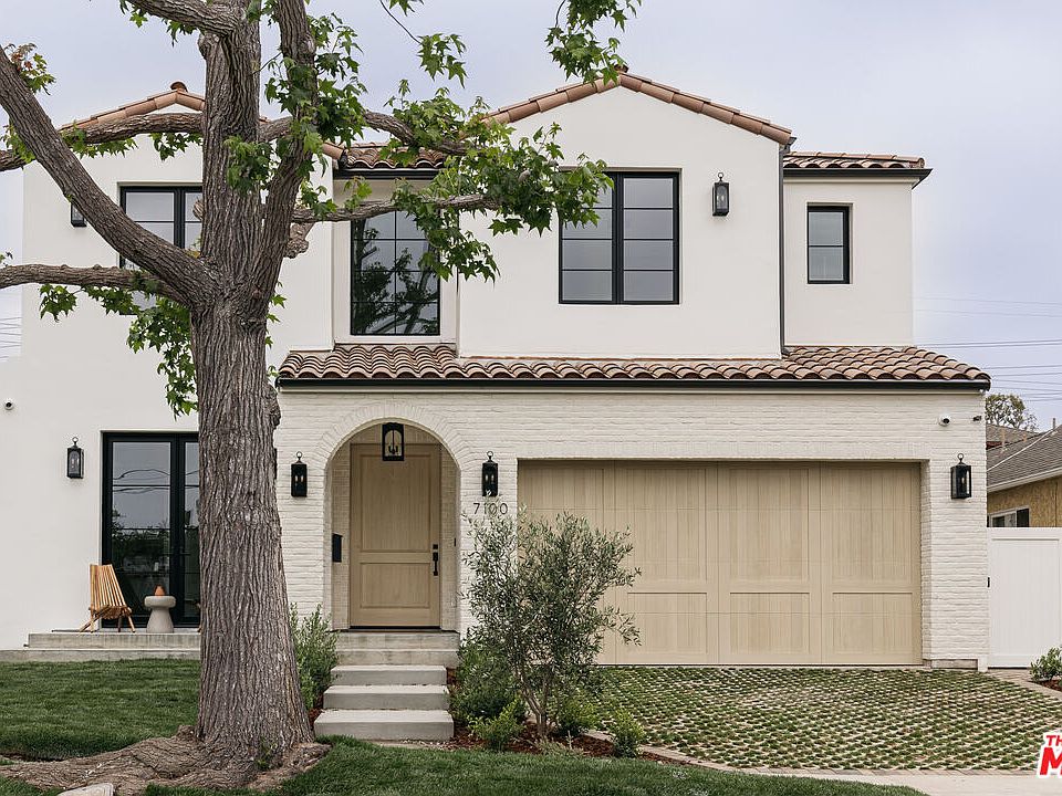This new, custom-built Modern Spanish pool home with detached ADU is located deep in North Kentwood on a fantastic, tree-lined street. This Instagram-worthy home features 5 bedrooms and 4.5 bathrooms in the main house, plus a detached 1 bedroom, 1 bath ADU. The efficient, open concept floor plan boasts an oversized great room with high ceilings, abundant natural light, and a cozy plaster fireplace, creating an ideal setting for family gatherings and entertaining. The chef's kitchen is a culinary dream, featuring two full-size sinks and dishwashers, Thermador appliances, an Italian double range, plaster hood, honed marble countertops with Azerocare protective treatment, custom cabinetry, a large center island, a walk-in pantry with an arched Pinky's iron door, and a bifold window with pass-through bar. Enjoy meals in the adjacent dining area or out on the cozy patio with its own outdoor fireplace and a built-in BBQ. The first floor also features an en-suite bedroom/office, a beautiful powder room with marble sink imported from Turkey, a mudbench "drop zone", and a two-car garage with epoxied floors and a walk-in storage/media closet. Up the beautiful, light-filled staircase, find a Primary Suite, three additional bedrooms and two bathrooms, and a large laundry room. The luxurious Primary Suite offers a serene retreat with roman clay walls, vaulted ceilings, multi-slide doors leading out to a balcony, a large custom walk-in closet, automatic window shades, and an en-suite bathroom complete with dual vanities, a soaking tub, a gorgeous glass-enclosed shower, and a water closet. Three generously sized bedrooms all with vaulted ceilings provide ample space for family, guests, or a home office. One bedroom has its own en-suite bathroom with oversized shower, and two bedrooms share a large bathroom with double sinks, a linen tower, and a shower/tub. Step outside to your private backyard paradise, complete with a cozy patio, lush landscaping, and a heated pool and spa with automatic cover. This home is equipped with a smart home system including indoor and outdoor speakers, hard-wired security cameras, Cat6 wiring, and a mesh wifi system. In addition, it features energy-efficient Lincoln clad doors and windows, two tankless water heaters, wide plank oak floors, dual zoned AC, smart thermostats, solid core doors with Emtek hardware, and countless other top-of-the-line features. The detached guest house (ADU) features a living room with stylish kitchen, separate bedroom and bathroom (with pool access), and a walk-in closet with laundry hookups. Located in an A+ location within a highly sought-after family neighborhood, you'll enjoy close proximity to local amenities and all that Silicon Beach has to offer. Don't let this one-of-a-kind home pass you by!