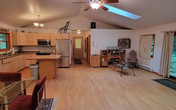 Here's your chance to own a paradise in the woods! This 2 bedroom, 1 1/2 bath home was built in 2002 and offers 5.79 wooded acres with mature oak trees and would make a great hunting camp or summer/winter get-a-way! Once inside you will notice a spacious layout offering a gorgeous kitchen with stainless appliances and laminate flooring throughout. Vaulted ceilings line the homes living and dining area along with a large master bedroom with walk-in closet, 3/4 bath and door wall out to a covered porch! A half bath is located off the laundry room along with a 2nd bedroom spacious enough for a set of bunks. The wooded acreage offers privacy, plenty of wildlife and could be logged out if you choose to! Don't forget that this home is located just 3/4 mile from Port Crescent State park which offers a covered pavilion, sandy dunes and the nicest beach in Huron County!