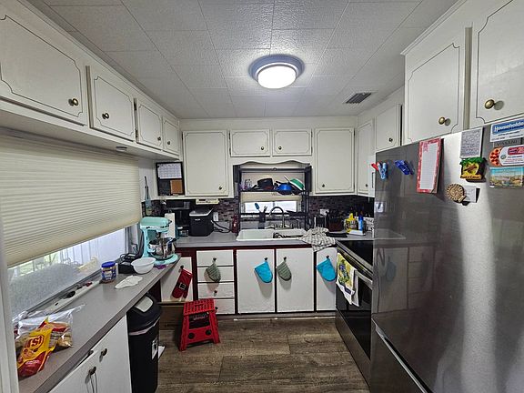 1974 RIVI 24 by 36 864 sq ft under roof Metal roof Metal siding Blue trim 2 bedrooms 2 bathrooms Central heat and air Washer and dryer included Some furniture included Carport fits 2 Utility shed Gutters Exterior back porch screened under roof Back patio area Gazebo in large backyard Custom kitchen Stainless steel fridge and stove Custom laminate countertops Decorative deep sink Custom tile backsplash White microwave Custom white cabinets Laminate flooring throughout Breakfast snack bar Bathroom with walk in shower and tub Vanity and sink Wallpapered walls Master bedroom with closet ceiling fan blinds Walk in closet his and her storage Built in dresser bureau in guest bedroom Soft panel ceilings painted walls panel walls Fans and blinds throughout 7100 Ulmerton Road Lot 618 Largo Florida 33771 Ranchero Village 3 heated pools 3 clubhouses Fitness center Shuffleboard courts Tennis courts Pickleball courts Bocce ball Horseshoes Library Games room Billiards room Laundry facilities Off street parking Paved streets Landscaped home sites Mature trees No felonies no evictions no bankruptcies or foreclosures in last 5 to 7 years Credit score 620 or higher Approving income and 12 months rental verification Prepaying lot rent 3 to 12 months may be accepted per park management Deposit by check Final payoff by wire to escrow after park approval Priced to sell Must see First come first served