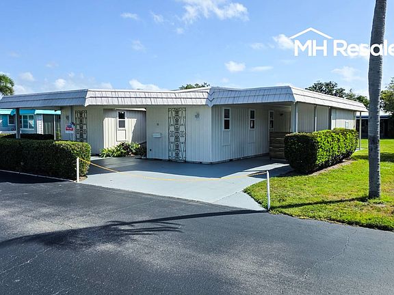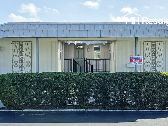 This wonderful inside and outside 2 bedroom and 2 full bath Split Bedroom plan home has a clean Four Point Inspection Report with a brand new hot water heater, ready to be insured and enjoyed. The floorplan, only available in Ranchero Village, is like living in a traditional site built home with a large 1,304 sqft in living space. On the outside, enjoy 4 car parking or 3 cars and a front patio area with a view of one of the community's 3 lakes. Matured shrubbery on the front and both sides provides privacy. The location, one of the best lots in the community; a short walk across the grass to the primary amenities area in the front and covered patio area in the rear overlooking a large open space grass area, not looking into the rear of another home. Electric hook up for a spa and hinged privacy wall on wheels (for spa maintenance) or private sitting area. Two sheds with shelving. All concrete carport and shed areas are freshly painted. Washer and dryer hook ups, washer included. All windows were replaced with double pane insulated glass windows except for the Florida room. Energy saving, low maintenance roof over. New hot water heater. Hurricane mitigation on the mansard (decorative) roof panels and carport. On the inside; both bathrooms have been remodeled. Vinyl plank waterproof flooring in the kitchen, front door entrance and both bathrooms. Berber carpet throughout the home. This home has plywood subflooring, a huge money saving plus for changing out the carpet to vinyl woodgrain plank flooring. Full under market replacement quote available. Four ceiling fans. Freshly painted interior. This home is clean and ready to move in. Ownership: Land-lease Age Restrictions: 55+ (1st occupant ), 45+ (2nd occupant ) Pet Policy: 1 indoor cat only. Lot Rent: $1,250/monthly includes; trash, lawn care, and all community amenities (more than any other community in Pinellas County). Pass Ons: $98/month on average; sewer, cable t.v and high speed internet (at a discounted rate) Welcome to Ranchero Village, One of the most sought out 5 Star Communities either to buy as your seasonal home or full time residence. Ranchero Village offers more amenities than any other manufactured home community in Pinellas County, to include 3 pools, 3 clubhouses, spa, 2 saunas, 10 court shuffleboard, 4 tennis courts (2 illuminated for night play), pickleball, bocce ball, 3 lakes, 1 with a large gazebo, covered barbecue pavilion, putting green and driving cage, horseshoes, billiards and a new fitness building with state of the art exercise equipment. A short drive to 2 international airports and award winning Gulf of Mexico beaches. All listing information is deemed reliable but not guaranteed and should be independently verified by licensed professionals. MHResales does not guarantee or warrant the accuracy of this information, measurements, or condition of any property.