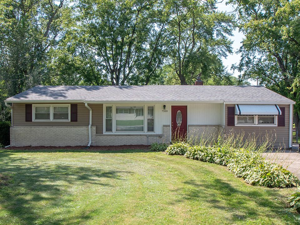 This house was fully remodeled within the past 5 years - from top to bottom! Featuring three bedrooms and 2 baths, this open concept home also includes a giant family room and a huge three car garage! Finished in contemporary style throughout - soft close cabinets and stainless steel appliances and breakfast bar in the kitchen - glass tile showers and double vanity sink in the bathroom - white trim and a fresh and bright grey blue color - main bedroom has an attached full bath - plus the house retains it's original charm with refinished real oak hardwoods and interior limestone accents. Sliding doors off the kitchen, and double doors in the family room lead to a large deck, and a shady green backyard. The 3 car garage has room for both cars, plus your yard tools, toys and hobby space! HVAC, roof, windows, electrical, plumbing - all updated since 2020, so no big updates needed. Located in a quiet neighborhood, within an easy walk to two schools and a large park, this move-in ready home is a gem!