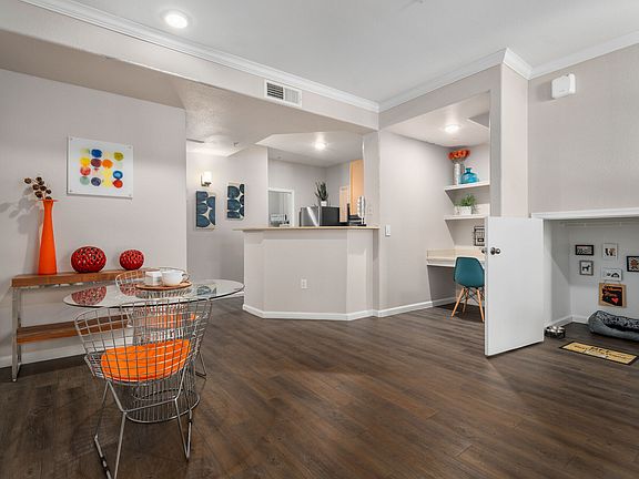 - Exterior features: Built-in desks, Built-in entertainment center, Business Center, Crown molding, Energy efficient lighting, Energy efficient windows, Extended plank flooring, Fully equipped kitchen with complete appliance pac, Nest thermostats, One-, Two-, Three- Bedroom Residences, Pet Park, Preinstalled WiFi with 1st Month Free from COX, Quartz countertops, Roman size tubs, Stainless steel appliances, TV Lounge, Yoga Room & Flex Studio
