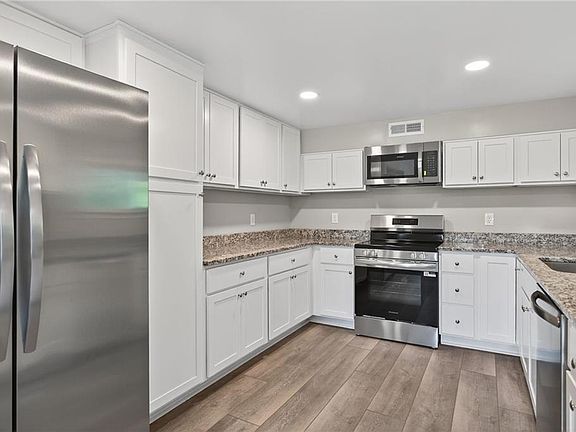 Modern colorsLarge detached garageSleek modern touchesGranite countertopsSurrounded by treesFresh new carpetNew roof shingles