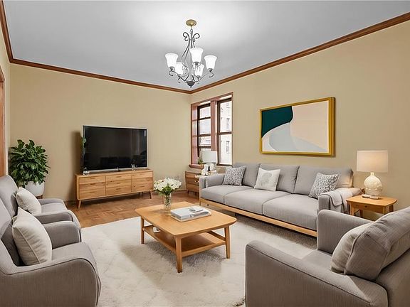 Stretch out and relax in this spacious one-bedroom, one-bathroom co-op in the heart of residential Bay Ridge, minutes from waterfront outdoor space and great restaurants. Inside this expansive home, you are welcomed to beautiful garden views, a long gallery entry introduces soaring ceilings, hardwood floors, and a convenient coat closet. Ahead, the large living room provides a generous footprint for seating and dining areas alongside oversized windows. In the windowed eat-in kitchen, you’ll find gleaming tile floors, abundant cabinet and pantry space, tile backsplashes, full-size appliances, and plenty of room for a café table. Enjoy a king-size bedroom with space for a home office area and a windowed full bathroom with a large tub/shower. Two more large closets ensure storage will never be a concern in this beautiful Brooklyn home. Built in 1928, this property is a stately elevator cooperative where residents enjoy a gorgeous lobby, live-in superintendent, a state-of-the-art laundry room, storage, a bike room, and a courtyard. Cats and dogs up to 40 lbs. are permitted. Subletting is allowed for two years after two years. Located on a tree-lined street, this Bay Ridge home is close to fantastic dining and shopping along 3rd and 5th Avenues. Breathtaking bridge views, recreation and green space are found just minutes away at Owl’s Head Park and Shore Road Park. Excellent express bus service, the R train, Bay Ridge Ferry Terminal, Belt Parkway, Gowanus Expressway and Verrazano-Narrows Bridge provide easy access to the rest of the city and beyond.