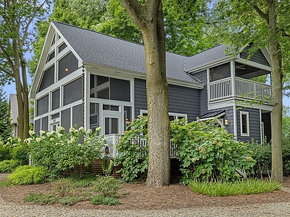 HARBERT Architecturally stunning home with 4 bed, 2.5 baths perched on a rolling hill overlooking a deep wooded lot. Soaring 26' vaulted cedar ceilings in the screened porch and the open kitchen/living room w/ fireplace. The 2700sq ft of living space has been meticulously designed. The upper floor has a master suite, sleeping porch and loft/den that overlooks the main living area. The lower walkout level features a huge family room, laundry & bedroom that walks out to beautiful, professionally designed grounds & stacked stone fire-pit. The huge, PRIVATE back yard would be the perfect spot for a pool!!This property gives you the feeling of being in the country, but you are less than a mile from one of Lake Michigan's best beaches! Would be a great VACATION RENTAL. Be in by the holidays !