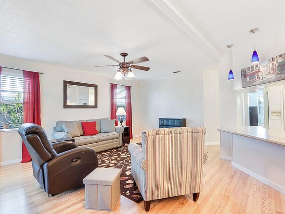 Welcome to the south Florida dream! This 2/2 manufactured home (you own the land) in the community of Ridgeway is the perfect place to soak up the sun & sand without breaking the bank. With no HOA fees, you can bring your trucks, motorcycles, boats, pets, and if you're feeling fancy, just toss in $300 to join the clubhouse and pool! The owners have spared no expense in making sure you can enjoy the Florida lifestyle in peace. With a new (2021) 30-year shingle roof and new (2021) A/C unit, you'll be keeping cool and cozy in no time. Plus, 22 foundation anchors were installed in 2018 to ensure that the house is as strong and sturdy. And let's not forget about the new sliding windows, door, and added roof insulation in the front Lanai, as well as a new irrigation pump in 2021. This move-in ready home also boasts a workshop and carport for added storage. Inside, you'll find tile and laminate flooring throughout. The master bedroom is light & bright with a walk in closet and ensuite bathroom. The second bedroom is also spacious in size with a bathroom across the hall. The Kitchen has a great breakfast bar/pass-thru to the Living Room. And the best part? You OWN THE LAND! Just a stone's throw away from the beach, shopping, and restaurants, you'll be living the Florida dream in no time. And with the famous Hobe Sound Ocean Breezes blowing through your hair, you'll wonder why you ever considered living anywhere else. So pack up your sunscreen and flip flops and come enjoy the sweet life in Ridgeway. No HOA, all pets welcome!