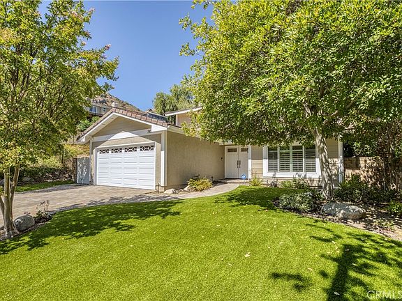 Absolutely stunning home located in the highly sought-after Castle Peak Estates and the award-winning Las Virgenes School District. This beautifully updated home sits on a quite cul-de-sac and boasts an incredible curb appeal. The inviting double-door entry opens to a spacious living room with picture windows, a large formal dining room, engineered wood flooring, and convenient powder room. The remodeled gourmet kitchen features granite counters, custom tile back splash, stainless steel appliances, and a breakfast bar that flows seamlessly in to an expansive family room with a cozy fireplace, wet bar, built-in cabinetry, and elegant travertine tile flooring. Recessed lighting enhances the modern feel throughout. Step outside to your private, park-like back yard-an entertainer's dream. Enjoy lush landscaping, a Newley installed custom brick patio, pergola, and an outdoor dining area with lighting to create the perfect ambiance for gatherings. Upstairs, the spacious primary suite offers a remodeled En-suite bathroom with dual sinks, a large shower, and an oversized walk-in closet. Two additional bedrooms share a remodeled hallway bathroom with dual sinks and tub. The upstairs hall way also includes custom engineered wood flooring and built-in cabinetry for extra storage. This gorgeous home is partially furnished. Attached two car garage with direct access to the house includes the washer and dryer, several stainless steel shelves for storage, new epoxy flooring, and EV Charger. Ideally located close to shops, parks, hiking trails, The Village, Topanga Westfield Mall, Costco, Calabasas Commons, all trendy restaurants, and easy freeway access.