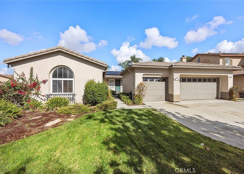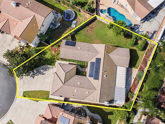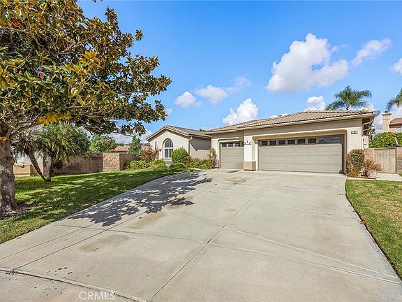 Welcome to this beautifully maintained single-story home nestled in the heart of Eastvale, perfectly situated at the end of a quiet cul-de-sac. Offering 2,591 sq ft of living space on a spacious 10,019 sq ft lot, this 4-bedroom, 2-bathroom home combines comfort, convenience, and elegance. Enter through a lushly landscaped courtyard into the formal entryway, which opens to a large living and dining room with views of the covered patio and private backyard—ideal for entertaining or relaxing. The separate family room features a cozy fireplace and seamlessly connects to the gourmet kitchen and casual dining nook. The spacious kitchen boasts a gas built-in cooktop, double self-cleaning ovens, microwave, refrigerator with ice maker (included), kitchen island, breakfast bar, walk-in pantry, and ample counter space. Enjoy the convenience of an indoor laundry room complete with a sink, cabinets, washer, and dryer—all included. The private master suite offers direct access to the backyard patio, a luxurious bathroom with a Jacuzzi tub, separate shower, double vanity, private toilet area, and a large walk-in closet. Three additional guest bedrooms share a full bathroom with a shower-over-tub. Additional features include: 10-foot ceilings with crown molding, Ceiling fans throughout,3-car attached garage. Located close to top-rated schools, shopping, public transportation, and major freeways. This is the single-story gem you've been waiting for—don't miss your chance to own this wonderful Eastvale home! Home has leased solar system that can be assumed for 10 years, removed bu solar company or purchased from solar company. Property listed as 3 bedroom in public records but is a 4 bedroom.