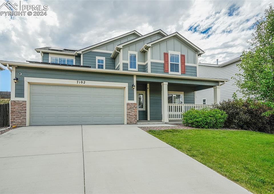 This stunning home located in The Glen at Widefield is in pristine condition, offering a perfect blend of comfort and style. Nestled against a backdrop of open space, this residence features an open and thoughtful floorplan designed for modern living. As you enter the home to the right is a home office with french doors. Further down the hall is an amazing living room with a lovely gas fireplace. To the right is the gourmet kitchen boasting pendant lighting, a central island & stainless-steel appliances. Noteworthy features include granite countertops, huge walk-in pantry, gas stovetop & double ovens perfect for quick food preparation. The breakfast bar area provides additional seating which is perfect for casual dining. As you move upstairs you will find the primary bedroom which is a serene retreat with large gleaming windows & ensuite with its dual bowl vanity, separate shower with beautiful river rock, bathtub & gleaming tile flooring. Additionally, the upstairs offers 2 additional bedrooms, separated by a large laundry room, another full-size bath & large family room. This home is packed with extras to enhance your living experience including a fully finished garage, security system and solar panels which convey to the new buyer will boost energy efficiency and reduce utility costs. Located close to Ft. Carson and Powers, this home offers easy access to parks, shopping, dining, and more. Don’t miss the opportunity to own this stunning property that combines immaculate condition with a fantastic location. Schedule your tour today to see what this home has to offer!