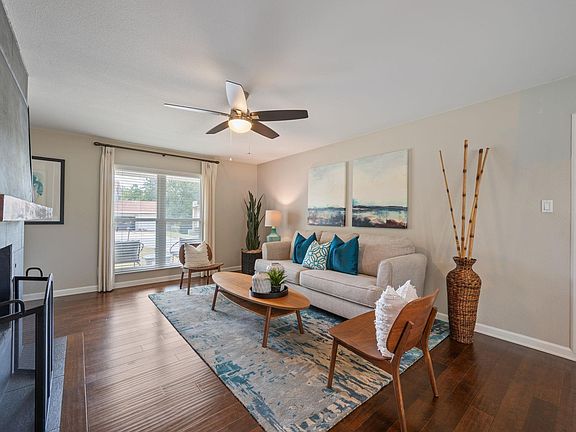 Fantastic University Hills home offers 4 bedrooms, 2.5 baths, and many great spaces inside and out. The home features hardwood flooring throughout, vinyl windows, and fresh updated bathrooms. On the main level, you will find a formal living room with a sleek fireplace, a kitchen and breakfast nook that look into the beautiful back yard, a formal dining room, and a relaxing family room. A half bath and indoor laundry room complete the downstairs. Upstairs, the primary suite is truly a haven - loads of room, a bright updated bathroom, and huge walk in closet. Three additional bedrooms are all generously sized, each with a walk-in closet -check out the sizes of these closets! The backyard is a great place to relax and unwind, with a covered patio, fire pit, garden area, and a spacious, shady lawn. This is a fantastic home with room to live, work, and play, with a quick commute to the airport, Mueller, UT Austin, and downtown. Come see!
