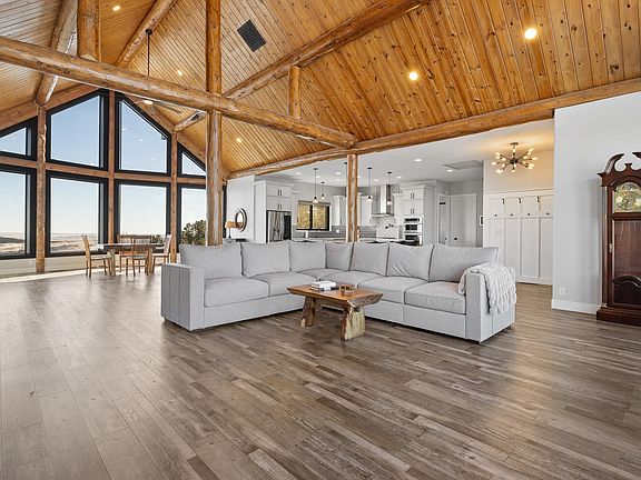 Listed by Lonnie Doney, KWBH, 605-407-1048. Nestled on 3 acres atop Marvel Mountain Subdivision, this luxury designed home has a fantastic open concept, high-end finishes, and million dollar views you have to see to believe! *Designed with today's lifestyle in mind, the uninterrupted main level layout is perfect for easy entertaining *A spacious great room welcomes you in, providing great relaxation space around the floating gas fireplace *Soaring 19' ceilings, walls of windows and beautiful whole-log construction create a rustic modern design that is sure to impress *The executive kitchen is the heart of this home with custom 2-tone cabinetry with soft-close features, unique pull outs and storage, sleek quartz countertops, stainless steel appliances and a walk-in pantry *The large island offers convenient seating, and the formal dining area provides an ideal setting for more formal meals *Main floor master suite on one end of the home, complete with a wall of windows, a large walk-in closet and a spa-like ensuite bathroom with custom tile walk in shower and jet tub *One additional bedroom with walk in closet and private bathroom access on this level *A large laundry room with utility sink and custom cabinetry leads to the home's attached garage and multi-use loft space above *The walkout basement level is a blank slate for you to cutomize as you wish- offering nearly 3,000sqft of space, with room to add bedrooms, bathrooms, an entertainment room and more! (cont.)