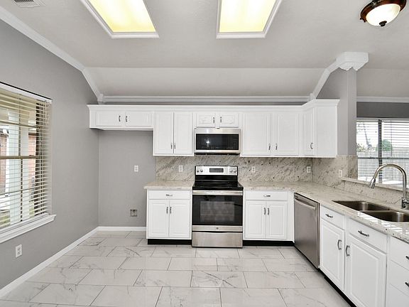WELCOME HOME!! Come right in to this spacious renovated and lovely 1-story home, 3 bedroom, 2 full bath, located in the established Community of Eldridge Meadow. The large living room greets you with a plethora of natural light. This gorgeous house has upgrades throughout. Large kitchen is truly the heart of the home with new countertops, back splash, new stainless steel appliances, stainless undermount kitchen sink with new faucet. Beautiful updated both bathrooms. Tile flooring in the entire house. Update light fixtures, ceiling fans, fresh paint throughout. Cozy up with the fireplace in the living room. The primary bath with two sinks, separate standing shower and large garden tub. This home is located in a cul-de-sac. Large backyard has nice covered patio for relaxing & entertaining. Don't miss on the chance to make this home your own! Call today for your own private tour.