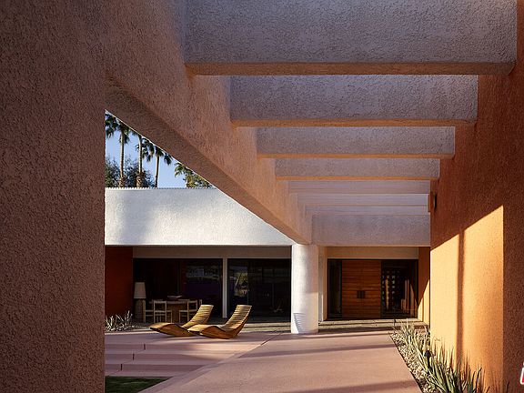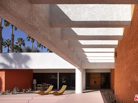 Set on an expansive corner lot along the prestigious Tamarisk Country Club, this architectural masterpiece is a striking example of Mexican modernism, inspired by the visionary designs of Ricardo Legorreta and Luis Barragan. Overlooking the 15th fairway, the home seamlessly blends bold geometric forms, serene courtyards, and effortless indoor-outdoor living. With breathtaking mountain views, a private courtyard featuring a pool and fountain, and an artfully designed interior, this estate embodies elegance, tranquility, and modernist refinement.A Grand EntranceA patinated copper double door set against rich, saturated hues welcomes you into a dramatic private courtyard, where light and shadow create an ethereal ambiance. The pool, outdoor dining area, and lush landscaping offer a serene retreat under the vast desert sky, with panoramic mountain views as the backdrop.Step through another set of exquisite wooden double doors, and you're greeted by a grand architectural space, where soaring ceilings, sculptural walls, and bold design elements create a harmonious balance of grandeur and warmth.Property Highlights*Expansive Corner Lot | Maximizing privacy, natural light, and space, with seamless indoor-outdoor integration.*Prime Fairway Location | Unobstructed golf course and mountain views in a tranquil, private setting.*Grand Living Room & Bar | A dramatic, light-filled space featuring a statement fireplace and a spectacular bar, perfect for both intimate evenings and elegant entertaining.*Primary Suite Sanctuary | A private retreat with its own fireplace, spa-inspired bath, dual en-suite commodes, and expansive walk-in closets, plus a secluded terrace.*Private Guest Wing | Designed for comfort and seclusion, featuring an en-suite bath with a steam shower.*Kitchen Atrium & Banquette | A sunlit atrium fills the space with natural light, while the built-in banquette offers the perfect spot for morning rituals or intimate dining, overlooking the lush gardens.*Expansive Dining Room | Floor-to-ceiling glass walls open to the rear garden and patios, ideal for alfresco dining and lounging.*Private Pool & Lounge Area | A tranquil escape featuring a sun-drenched pool, shaded seating areas, and multiple outdoor living spaces.This rare architectural gem embodies timeless serenity, modernist sophistication, and natural beauty, offering an unparalleled retreat in Rancho Mirage.