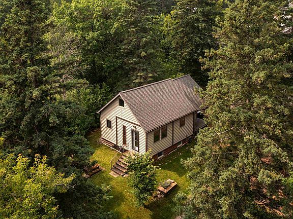 This cute and clean 2+ bedroom bungalow is a hidden gem nestled in the woods with direct trail access right at the edge of the property—perfect for outdoor lovers seeking a private retreat just minutes from downtown. Step inside to a bright and sunny open floor plan where the living room, dining area, and kitchen flow seamlessly together. The main floor features two bedrooms and a full bath with a classic clawfoot tub, tile floors throughout, and a mudroom with a coat closet off the back entrance. Upstairs, a partially finished third bedroom or office space awaits your personal touch. The open basement provides ample storage or potential for added living space. Enjoy the beautifully landscaped yard from the covered porch and spacious adjoining patio. With maintenance-free siding and a 1-car garage with attic storage, this home offers comfort, charm, and convenience in a serene wooded setting.