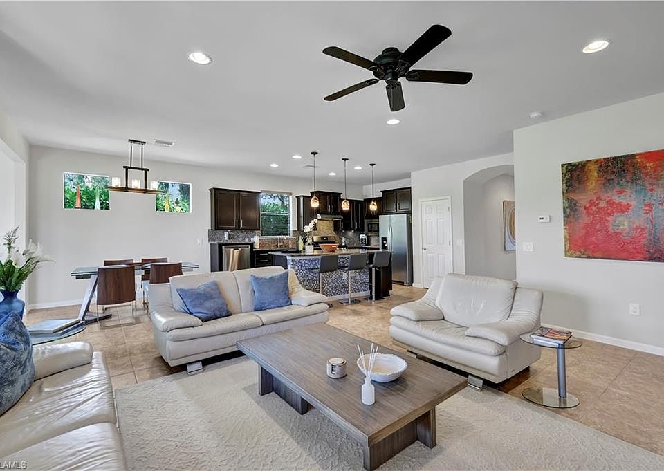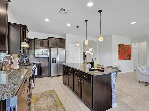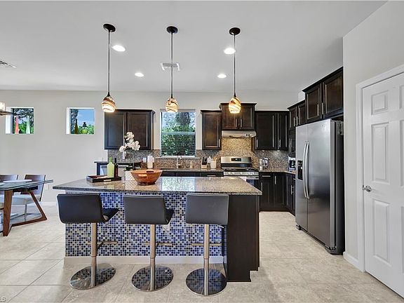 Welcome to Spacious Abbeyville Classic home, located in the prestigious gated community of Winding Cypress. This custom-designed, nine-year-old residence offers nearly 2,200 sq ft of living space, making it perfect for a relaxing seasonal retreat. The home features four bedrooms, three baths, an upper loft, a den, and a sunroom, providing ample space for you and your guests. The interior is tastefully designed with a mix of neutral tile and carpeting, offering a warm and inviting atmosphere. The well-appointed kitchen, equipped with stainless steel appliances, a gas stove, granite counters, and a tile backsplash, seamlessly adjoins the living area, making it an ideal space for entertaining. The owner s suite, located off the gathering room, boasts a lofty tray ceiling, and the extended ensuite bath features a nine-foot double sink vanity, a tiled shower, and a private water closet. The expansive walk-in closet with custom built-ins adds to the luxury. Convenience is key with a full laundry room on the first floor, complete with a wash sink. The sunroom opens to a covered and open, screened paver lanai, where you can enjoy serene water and preserve views. The corner lot location offers a large, fully landscaped side yard, perfect for outdoor activities. An added bonus is the extended garage, providing extra storage or parking space. This home is a must-see to fully appreciate all it has to offer.