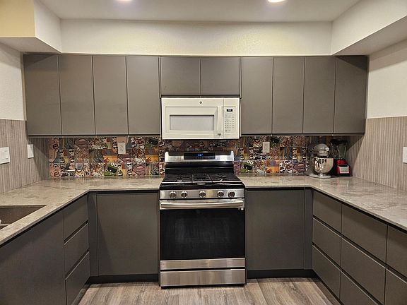 A new modern kitchen with plenty of additional storage cabinets and new appliances.