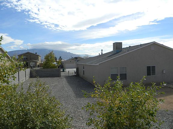 For more information call or text Amie at (505)681-1803 This house features a floor plan with a large well lit and open common area with hard wood floors and a gas fire place including the living room and kitchen. The master suite is furnished with separate shower stall/bath tub, his/her vanity sinks and a walk in closet. Spare bedrooms, spare bathroom, laundry room, coat closet, linen closet and garage occupy the opposite side of the house. The back yard is landscaped with gravel, trees and a flagstone extension to the patio. The back yard also features side access through a gate. Rent is $1175, Deposit is $1125. Tenant pays all utilities. Pets allowed on a case by case basis with a non refundable one time fee of $250 for the first pet and $150 for each subsequent pet. Tenant pays all utilities including Waste Management. Pets are allowed on a case by case basis with a one time non refundable fee of $250 for the first pet and $150 for each subsequent pet.