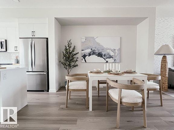 Modern design meets smart functionality in this stylish 2-storey lane home by award winning Cantiro Homes. It offers just over 1,270 sq. ft. of well planned living space! The spacious kitchen features quartz countertops, soft close drawers, a large walk-in pantry, and a massive window overlooking the backyard. Enjoy 9' ceilings on the main floor, a central dining area, and a bright front living room with a large window that fills the space with natural light. The covered front entry opens to a functional foyer with coat hooks. Upstairs, the oversized primary bedroom is located at the front of the home and includes a walk-in closet with a window, plus a 5' walk-in shower in the ensuite. Two additional bedrooms offer extra wide windows and are conveniently located near the upper-level laundry. East facing front yard and side entrance for future basement suite potential. Front yard landscaping included. *Photos are for representation only. Colours, finishing and elevation may vary.*