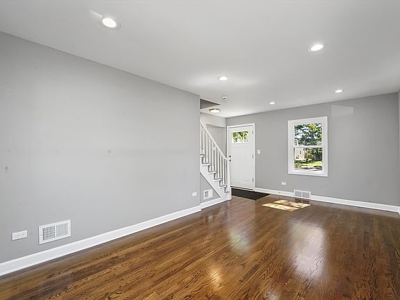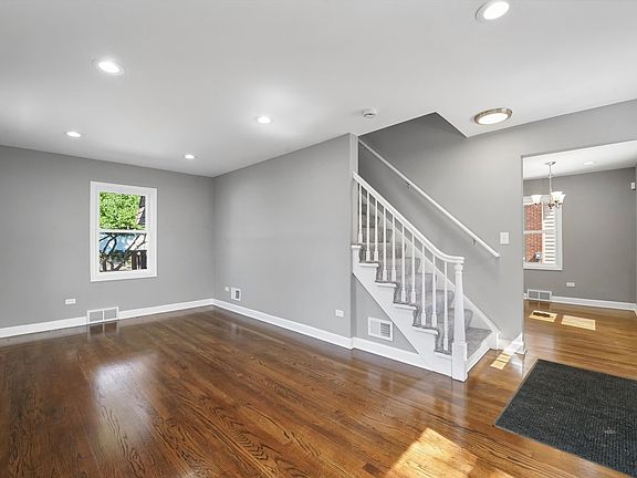 Check out this beautifully rehabbed 3 bedroom 1.5 bath home in the quiet neighborhood of Morton Grove. Walk into the living/dining room with refinished hardwood flooring and freshly painted walls. Modern kitchen boasts brand new ceramic tile flooring, white shaker cabinetry with gorgeous quartz countertops & subway tile backsplash, recessed lighting and brand new stainless steel appliances. There is a half bath off the kitchen and head upstairs to the 2nd floor with 3 great sized bedrooms with plenty of closet space. Basement has additional entertaining space, a family room with brand new vinyl flooring. 1 car attached garage. Brand new windows & HVAC. Schedule your showing today!