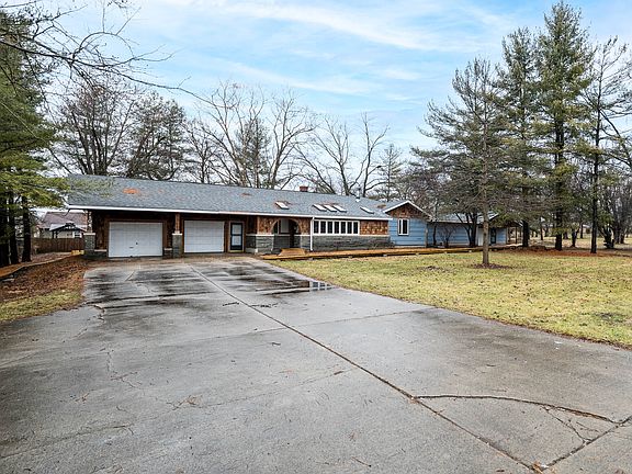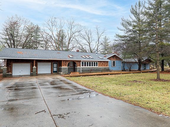 Once the home of Indiana artist Robert Quade, this 4 bedroom 1 1/2 bathroom home sits on over 1 acre of land and comes with approx 1400 square feet of studio space addition, including gallery show wall with lighting, over head door & separate HVAC - a dream space for the handy person, artist, business owner, woodworker. Inside the main home: large inviting great room, gas log fireplace, built in book shelves, updated kitchen (last 2 years), newer windows throughout the whole house, hardwood floors that could look magnificent with some work, on demand hot water, upgraded electrical, HUGE attic space above first garage and a multi room basement with more built in storage shelves. Outside: two storage sheds, composting bins and a newly installed accessibility ramp & pathway go the entire way around the property. Roof & skylights 2015. Gutters replaced 2022. Heated garages. Large driveway with multiple parking areas and load in area for studio space.