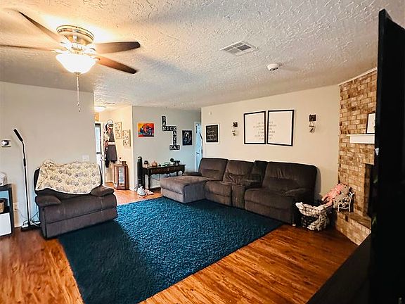 Superb one-story, three-bedroom, two-full-bathroom home nestled in a quiet and charming neighborhood. Located near shopping centers, restaurants, and a military installation. Walking into this stunning property you are greeted with a dazzling, oversized living area. To your left is a long hallway that houses the two bedrooms on one side, and the primary suite on the other. In the primary, you will find a closet that definitely stands out for its storage capacity! In the living space, from your right, you will find an open floor plan that allows the homeowner to entertain in the living room while situating themselves in the kitchen. The kitchen is accented with unique color cabinetry that stands out among the rest! Continuing past the living space brings you into a huge fenced-in yard, complete with a covered patio, the perfect way to end your day while enjoying the beautiful Oklahoma sunset.