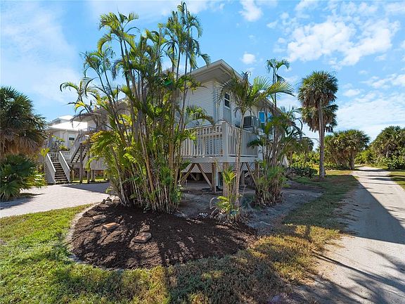 A must see on Palm Island. Duplex island home on Palm Island Resort. Enjoy watching the shore birds, sea life and fabulous sunsets from your choice of 3 decks and all have new decking in 2024. Also new in 2024; metal roof, gutters, lattice, interior and exterior paint. Located in the northern part of the property with a walking path to the beach adjacent to the residence. Safely set behind the natural berm a bit back from the beach this home has back yard space for family fun. The kitchen boasts granite counter tops, stainless steel appliances and new shaker style cabinets. A matching built-in desk under the interior stairs is a great use of space. The primary bedroom has access to the main floor deck and an ensuite with tiled walk-in shower and double sink countertop. Neutral decor throughout this duplex add comfort and allow you to add details to put your mark on it. Upstairs bonus area is currently set up with a desk, yes you could work with a spectacular view of the Gulf! Bask in the sun and take in the view from the balcony off this upper floor. The third bedroom also has a slider out to a deck with a view of the foliage surrounding the property. Spend your day by the community pool, walking the sandy beach or participate in the resort's vibrant tennis and pickle ball programs. Palm Island Resort is a vehicle free community; golf carts, walking and biking are the way to get around. Under the villa is a golf cart sized storage area and space enough for your beach toys. Visit the onsite restaurant, cafe and gift shop or take the car ferry to shop and dine in the surrounding community. Move right in and start enjoying the island life. Between Ft. Myers and Sarasota, if you are in search of all the west coast offers this is a must see turnkey ready beach home!
