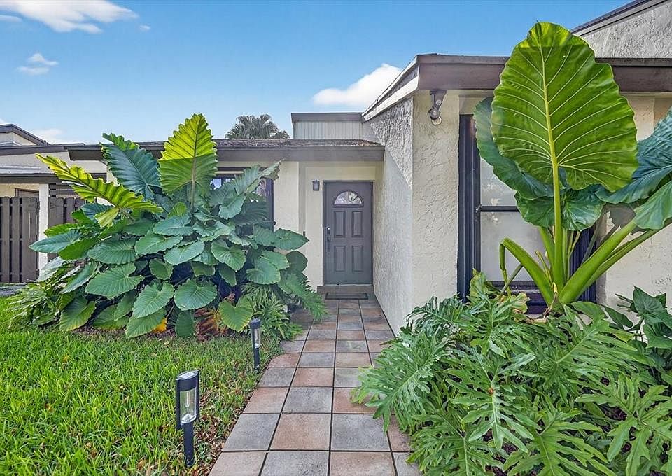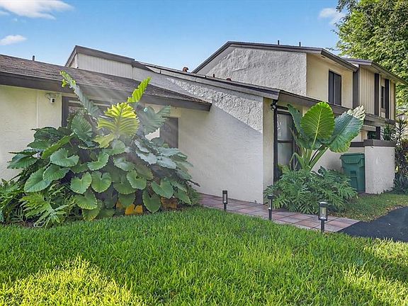 Beautifully remodeled 2 bed 2 bath one story townhome inside the desired Woodgate Community. Featuring high end finishes throughout, a modern granite kitchen with snack/bar counter, stainless steel appliances. Both bathrooms boast sleek porcelain tile and mediterranean style vanities. Porcelain tiles throughout the home, large windows let in the natural sunlight with zebra blinds with blackout shades in the spacious bedrooms for optimized temperature control. Indoor laundry, accordion shutters throughout, concrete backyard with a privacy wood fence, exterior storage and tons of mature foliage. Bonus feature property has an attic ladder with ample storage space. Low HOA fee that includes community pool, tennis courts and all exterior painting including driveway. With A rated schools nearby!