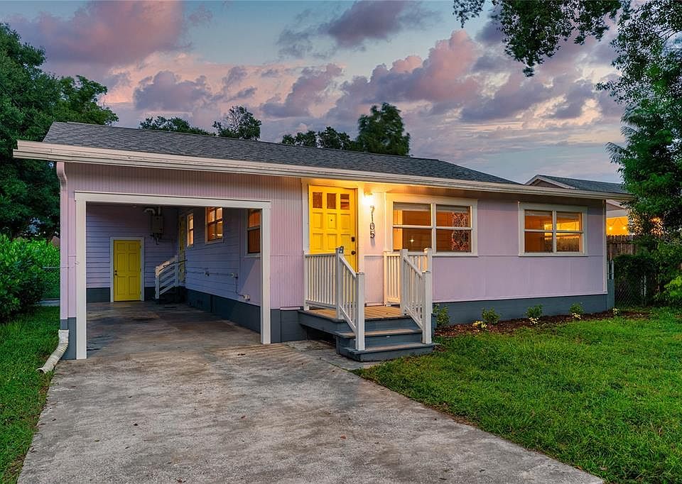 One or more photo(s) has been virtually staged. Welcome to this incredibly charming 2-bedroom, 1-bath craftsman home located in a quiet pocket of Seminole Heights, within walking distance to local favorites like Bamboozle, Heights Pizza, and Bo’s Ice Cream. As you step into the spacious enclosed sunroom, you’ll notice the home combines historic character with thoughtful updates. Inside, you’ll find original heart pine hardwood floors and beautifully crafted stained wood trim, baseboards, crown molding, and custom kitchen cabinetry - all a rare testament to the craftsmanship of the home’s previous owner, a woodworker who meticulously maintained the property. The kitchen is filled with natural light and blends classic detail with modern convenience, featuring new stainless steel appliances, gas range, chef’s style faucet, dishwasher, pantry storage, and extra counter space with open shelving. Both bedrooms are spacious and inviting, accented with the same warm wood finishes and large windows that flood each room with natural light, while the second bedroom offers a unique stained-glass window for added character. The enclosed front sunroom provides an additional 200 square feet of versatile flex living space - ideal for a home office, sitting/reading space, or playroom - and even includes a discreet pet door and ramp for furry friends to explore outside. Outdoors, the home offers a covered carport with a 60-square-foot laundry and storage room, along with a private, fully fenced backyard framed by lush landscaping. The walkway leads to a charming covered pergola perfect for relaxing or entertaining, while a storage shed in the rear yard adds additional space for all your storage needs. Recent upgrades add tremendous value, including a brand NEW ROOF installed in [2025], a water filtration system, and a full solar power system. The solar can either be fully paid off at closing - leaving the new owner with no electric bill - or the buyer can assume the fixed $127 per month solar payment, creating long-term savings on utilities. Surrounded by a mix of charming vintage homes and lots of beautiful new construction, all centrally located in one of Tampa's most beloved neighborhoods Seminole Heights, just minutes to Downtown Tampa, Armature Works, the Tampa Riverwalk, Ybor, Raymond James Stadium, Busch Gardens, amazing local restaurants, shops, and major highways making commuting around Tampa Bay a breeze.