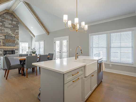 The pictures are of our current model home, this home will be the same floor plan and very similar on the interior. Complete with cultured stone fireplace, beams, farm sink, drop zone, laundry cabinets and shower bench in master shower.