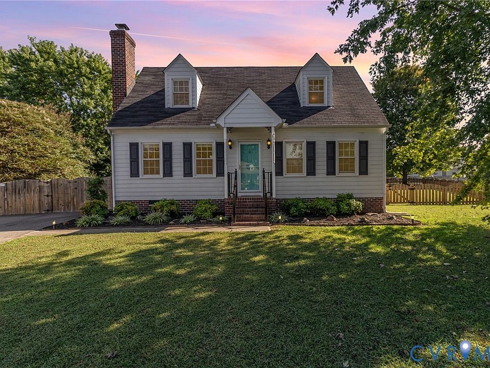 Welcome to your dream starter home, situated in a peaceful neighborhood and quiet cul-de-sac street! This 4-bedroom, 2-bathroom Cape-Style home offers the perfect blend of modern elements and cozy appeal, ideal for families or first-time home buyers. Step inside to discover a semi-open concept floor plan that connects the living spaces. The inviting living room, featuring a beautiful whitewashed brick wood-burning fireplace, perfect for cozy evenings. The updated kitchen has just what you need, boasting sleek granite countertops, stainless steel appliances, and a charming coffee bar for your morning brew. Outside, the level lot is a standout feature, complete with a fully fenced backyard, ideal for kids, pets, or summer barbecues and campfires. Entertain in style on the expansive back deck, perfect for gatherings or relaxing under the stars. Two sheds provide ample storage, with one thoughtfully set up as a powered man cave, just in time for fall football games. This special home has a little bit of it all, making it the perfect place to start your next chapter. Close to major interstates 295 and 64, Shopping and dining. Schedule your tour today!!