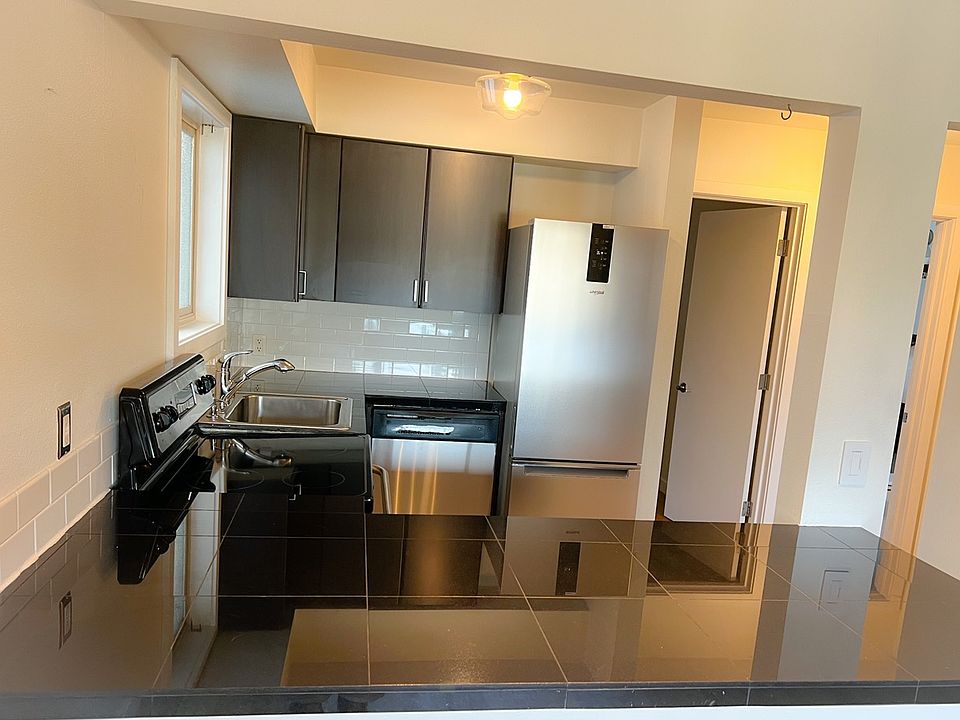 Modern one-bed, one-bath condo in the heart of West Seattle. With approximately 620 square feet, the home offers a spacious bedroom and living room, a kitchen island, and generous storage including a walk-in closet, three additional large closets, and a small basement storage space. The bathroom features a skylight, the kitchen and bath have brand-new flooring, and hardwood floors extend through the bedroom, living room, and hallway. The updated kitchen includes stainless steel appliances and a brand new modern refrigerator. Large windows fill the condo with natural light and provide water views from the living room. A designated parking space is included, along with water, sewer, and trash services. Located just steps from Lincoln Park and the beach, this condo is surrounded by restaurants, bars, coffee shops, the farmers market, and more. Perfect for walking, biking, and commuting with nearby bus routes, this home combines modern updates with a fantastic West Seattle location. 12-15 Month Lease Agreement