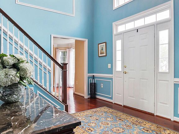Cozy gas fireplaceBrick-front colonialWalk-in closetElegant two-story foyerFrench doorsDouble-sink vanityStunning hardscape patio
