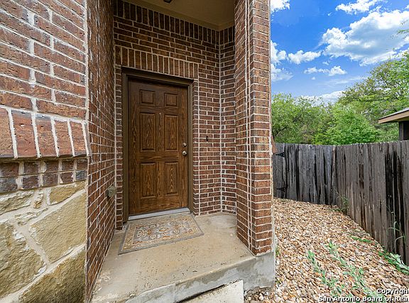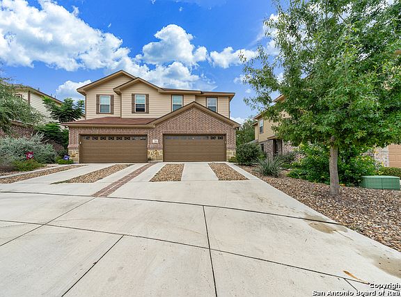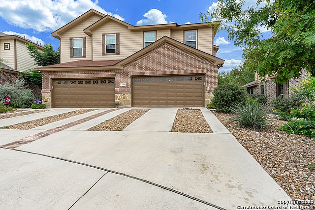 Experience upscale, quiet living in this custom 3 Bedroom, 2.5 Bath townhome, perfectly situated near the South Texas Medical Center. The gourmet kitchen is a chef's delight, featuring granite countertops, a tiled backsplash, recessed lighting, a deep undermount sink with a pull-out faucet, and modern brushed nickel plumbing fixtures. The home boasts elegant wood-look plank tile flooring throughout the main areas, complemented by upgraded carpet in the bedrooms, and includes a luxurious walk-in master shower. Added conveniences include full-size washer and dryer connections and a large 2-car garage. Step outside to relax on the covered patio or enjoy the nice-sized, private fenced backyard. The townhome is part of a small, quiet community that offers a tranquil setting by backing up to a peaceful ranch.