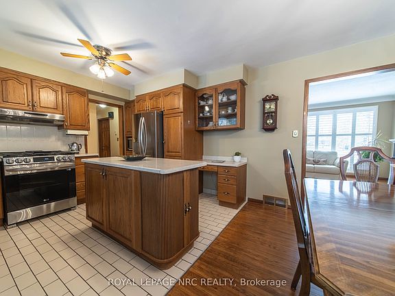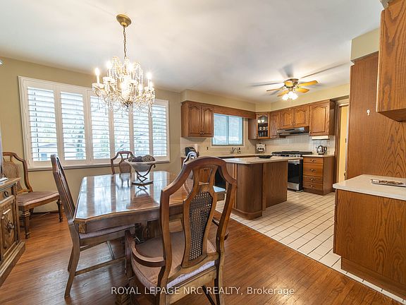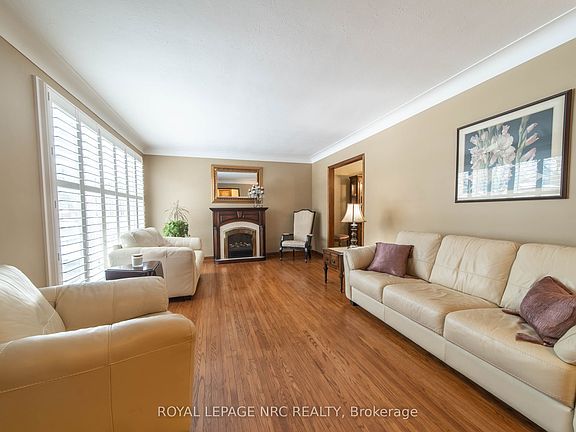 Welcome to this bright and inviting side split offering a rare main-floor bedroom and full bath, perfect for guests, multi-generational living, or added convenience. The second level features two generous bedrooms with beautiful hardwood flooring and a handy 2-piece bath. The heart of the home is the warm and functional kitchen, complete with oak cabinetry, an island, excellent counter space, and plenty of storage. Enjoy gatherings in the formal living room, highlighted by a cozy fireplace and a large picture window that fills the space with natural light. The adjoining dining room, also with hardwood flooring, overlooks the expansive backyard-ideal for family barbecues or future outdoor projects. The partially finished basement offers even more living space with a comfortable rec room, 3-piece bath, laundry room, storage area, and a spacious cold room. Outside, you'll appreciate the attached garage, paved drive, fenced yard, and a location that can't be beat-close to the QEW, bus routes, shopping, and schools. A wonderful opportunity in a sought-after neighbourhood. Furnace, A/C (2022), Roof (2015), Windows (2015)
