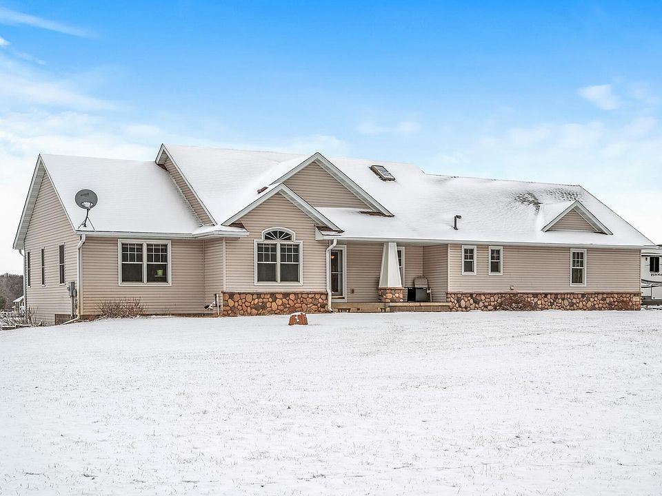 Spectacular rambler situated on 6+ sprawling acres in desirable Oxford Township. House is in fantastic condition, spacious open design features stone fireplace, hardwood floors, huge center island, loads of cabinetry, main floor laundry/mud room with half bath, great master with huge walk-in closet and large bath featuring separate whirlpool tub & shower! Garage is over-sized and heated with workshop area. This place even has a home for your RV and other toys! 60x20x16 Pole shed featuring outside RV 50 amp power box.