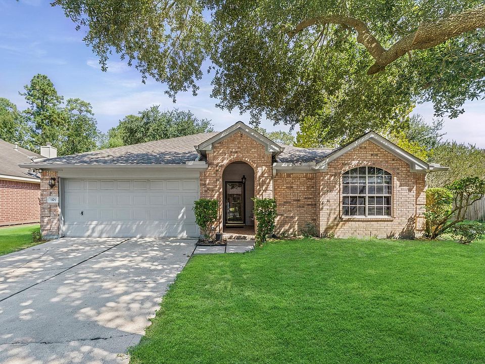 Beautiful one story 3 bedroom and 2 bath Home located in atascocita south , behind an elementary school and park and also close to pool and club. Covered back patio with walk ways and storage. It has a very private feeling to it as you have no back neighbors Large pathway that leads to the park and school create a distance of privacy with the neighbors to the left. Large kitchen and living room with fireplace ready for the holidays ! CARPET primary bedroom and bedrooms are updated (2022). Home fully guttered, sprinkler system in place in front and backyard. you wont want to miss this opportunity ! Schedule a showing today !