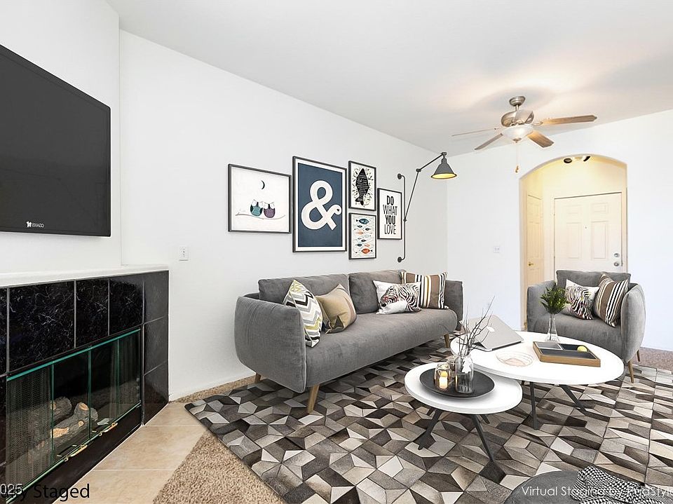 Resort Style Gated Condo Community boasts an amazing 2 bedrm, 2 full bath unit on the 2nd Floor. The community is located just a short 3 min drive to Durango Casino, 15 mins to the airport and 18 mins to the strip. Walk to coffee shops and restaurants. This home has a sensible floorplan with the Primary Bedroom separate from the other. Ample storage options with the primary having 2 closets as well as separate linen storage. The spacious second bedroom features a large walk-in closet. Living rm & both bedrooms have ceiling fans. All appliances are included. Cozy up to the fireplace on those cool evenings. Enjoy the serene views of the mature pine trees & palm trees from your inviting balcony which is perfect for relaxation. The community has tennis courts, 3 swimming pools, spas, saunas, fitness room, workout areas and so much more. Don't miss out on this competitively priced unit.