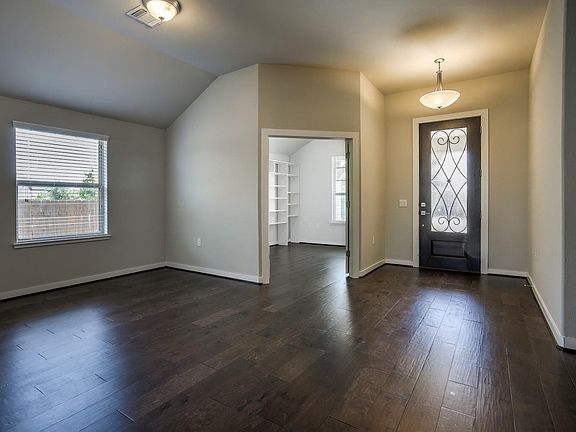 Located on a quiet cul-de-sac street, this spacious single-story home features beautiful wood floors throughout and a light and bright open floorplan. With 4 bedrooms, plus an office, plus a formal dining space, there is plenty of room to relax and to work from home. The spacious living room is open to the large kitchen with an eat-in-kitchen area. The large back yard has a covered patio and a space for your own garden. Enjoy extra storage space in the garage as well. Refrigerator, washer, and dryer included. Located within the vibrant Easton Park community, the home is close walking distance to nearby retail options, plus the community walking trails and amenities including multiple parks, pools, a dog park, and more! A short drive from downtown and Austin Bergstrom International Airport, this is a great location for commuting to other parts of Austin or traveling for work.