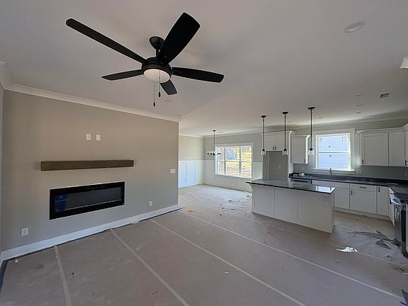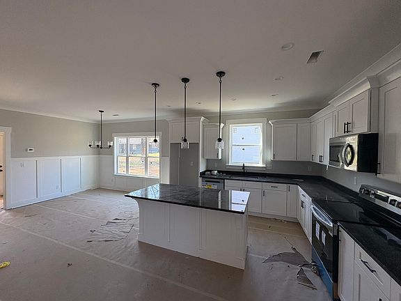 On the first level you will find an open floor plan with an open great room, kitchen and dining area great for entertaining. There is lots of crown molding, a fireplace, LVP flooring, a large island with room for stools, a mudroom with a built in bench, a two car garage, and a covered front and back porch.