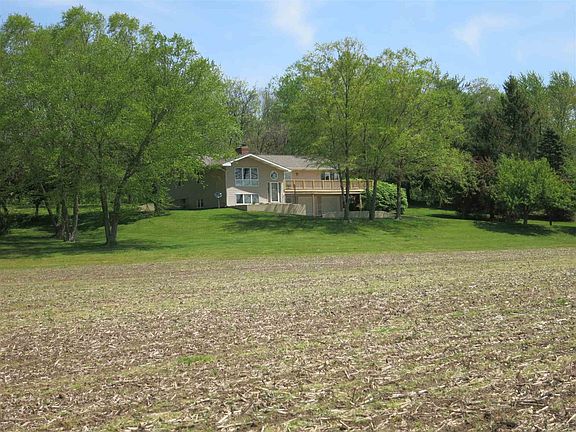 Beautifully maintained! Located on 3.37 acres atop a hill with a peaceful view. One story home with a finished basement. 2 wood burning fireplaces. Beautifully remodeled kitchen with an abundance of cabinet and counter space. Wonderful space both inside and out. The dining area opens to the spacious deck. Taxes reflect no exemptions. The lower section (approximately 1 acre) is planted in soy beans and cash rented for the season, so not usable by owner. This is a yearly lease. The new owner will get the cash rent, which is $230 at the end of the season, once the farmer has harvested the crop. Closing of this property cannot be prior to July 1, 2020. Fireplace insert is being removed. Property sold As Is.