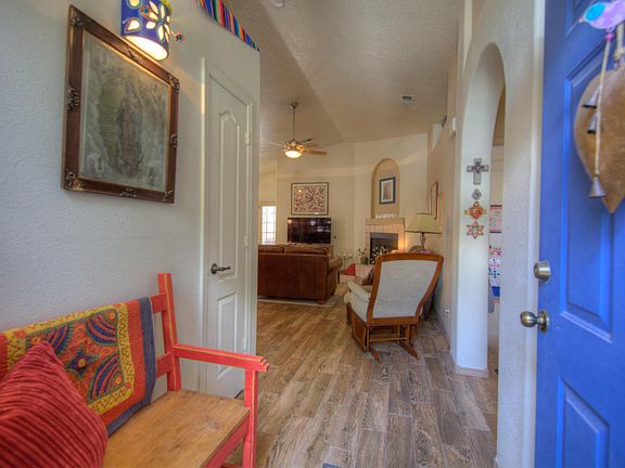 This immaculate 3 bedroom 2 bathroom home has the perfect floorplan with the Master Bedroom on one side of the home and secondary bedrooms on the other. Open floor plan with high vaulted ceilings and wood tile floor throughout with carpet in the bedrooms. This home is in 3 great schools districts Northstar Elementary, Desert Ridge Middle and La Cueva High School.