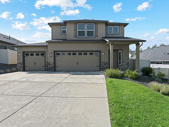 Discover style and comfort in this two-level Middleton home in the vibrant Eagle Ridge community. With desirable northeast views, this home offers easy access to Spokane while surrounded by parks and trails. The main floor features an open-concept living space perfect for entertaining. A chef's kitchen gleams with quartz counters, stainless steel appliances, and a beverage bar. The landscaped, fenced backyard includes a covered patio for outdoor dining. Upstairs, the spacious primary suite offers a dual-vanity bath and walk-in closet. Two additional bedrooms share a Jack-and-Jill bath, and a dedicated laundry room on the same level adds convenience. The three-car garage provides ample storage. Embrace a lifestyle rich with community amenities, including five miles of paved trails, multiple parks, and many community-sponsored activities. Reach out today to schedule a private showing!