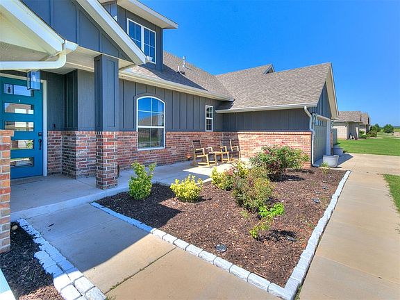 Located in Rio Del Sol within the Moore School District, this beautifully designed open-concept home is as functional as it is striking. The heart of the home is the stunning emerald-toned kitchen featuring custom cabinetry, sleek granite countertops, stainless steel appliances, a gas cooktop, and eye-catching globe pendant lighting. The oversized island offers plenty of prep space as well as extra seating.