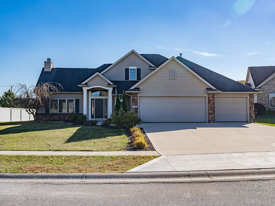 Tucked away in the peaceful Rothman Pointe subdivision with convenient access to everyday shopping and work routes, this 3-bed, 2.5-bath home offers the perfect blend of comfort and functionality. The professionally landscaped yard and inviting curb appeal set the tone for what awaits inside. Step through the welcoming foyer into an open living area perfect for entertaining. The living room, kitchen, and eat-in space flow seamlessly together beneath impressive two-story ceilings, with plenty of room to gather and relax. A built-in buffet with beverage fridge adds both convenience and charm, while the updated kitchen features newer appliances, solid surface countertops, a striking tile backsplash, and an eye-catching range hood. The main-floor primary suite feels airy and private, complete with a recently updated bathroom with tile walk-in shower. Upstairs, you’ll find two additional bedrooms, a full bathroom, and a spacious loft that offers great flexibility for a home office, play area, or reading nook. Enjoy the bright sunroom that leads out to a back patio, ideal for outdoor dining or quiet evenings in the backyard. Additional highlights include thoughtful attic storage, a large three-car garage with an extra wide 18 ft garage door and workshop space, and a beautifully maintained setting that makes this home truly special.