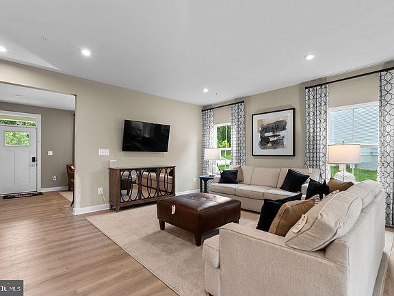 Discover this exquisitely renovated Ballenger model home built in 2023 by Ryan Homes and nestled in the picturesque Wellington Farms. With its luxurious finishes and stunning landscaping, this residence perfectly combines comfort, convenience, and luxury for an idyllic lifestyle. Step through the covered front porch into the main level, where luxury finishes and expansive living spaces await. The foyer opens into a formal living room or versatile flex space tailored to your needs. From there, transition seamlessly into the open-concept family room, dining room, and kitchen, designed for effortless dining and entertaining. The area is enhanced by recessed lighting and luxury vinyl plank floors, creating an inviting and elegant atmosphere throughout. The kitchen is equipped with stainless steel appliances including a gas range, quartz countertops, and a stylish herringbone mosaic tile backsplash. It features an expansive modern island with seating for three and a convenient prep sink. Elegant pendant lighting illuminates the space, complemented by ample white and gray cabinetry. The main level also features a well-appointed office or den and a convenient powder room. The upper level features three generously sized carpeted bedrooms, a full bathroom with dual sinks, and a luxurious owner’s suite. The suite boasts cathedral ceilings and a spacious attached bathroom with dual vanities with quartz countertops, a separate water closet, a glass-enclosed shower with a built-in bench, and two walk-in closets, offering a perfect blend of elegance and functionality. The lower level is an entertainer’s dream, featuring a bright, open, and versatile space with walk-up exterior access. It includes a full bathroom and a convenient laundry room, making it ideal for hosting guests and accommodating various needs. Savor alfresco dining on the covered deck, which offers lush views of the expansive backyard adorned with beautiful landscaping and vibrant shrubbery. Wellington Farms is an exclusive, resort-style community nestled in the heart of North Laurel, offering easy access to I-95, Route 29, and Route 32. Residents enjoy a range of amenities, including a pool, a clubhouse with a fitness center, and a playground. The area is also close to upscale shopping and dining at Maple Lawn, and outdoor enthusiasts can explore nearby attractions such as Howard Duckett Watershed, Scotts Cove, and Hammond Park.